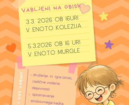 3. marca ob 16. uri v enoto KOLEZIJA in 5. marca ob 16. uri v enoto MURGLE
