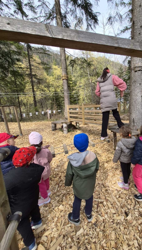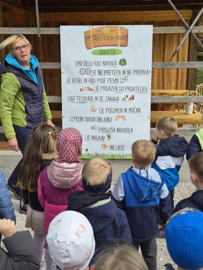 “A’ veste, da majo škratki pustolovski park! Lahko plezaš po plezalni steni, hodiš po »stopnicah«, ki migajo, skačeš po hlodih, se spuščaš po žici…ful gre hitr! In škratkom lahko pomagaš zgradit hišo – rabiš dolge in kratke deske, pa take posebne za streho. Tolk je velika, da se lahko tud’ mi not igramo. Pol pa greš še k škratku v disco – zlo je dobra muzika, pa lučke, pa mehurčkiii! Zelo je fino.”